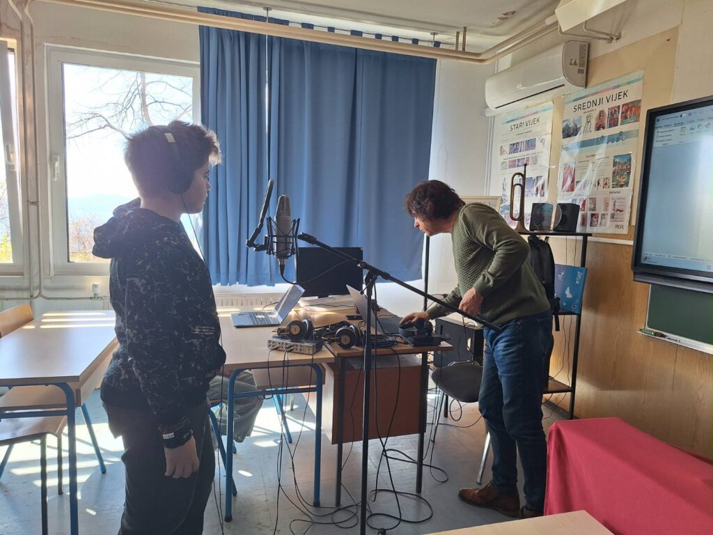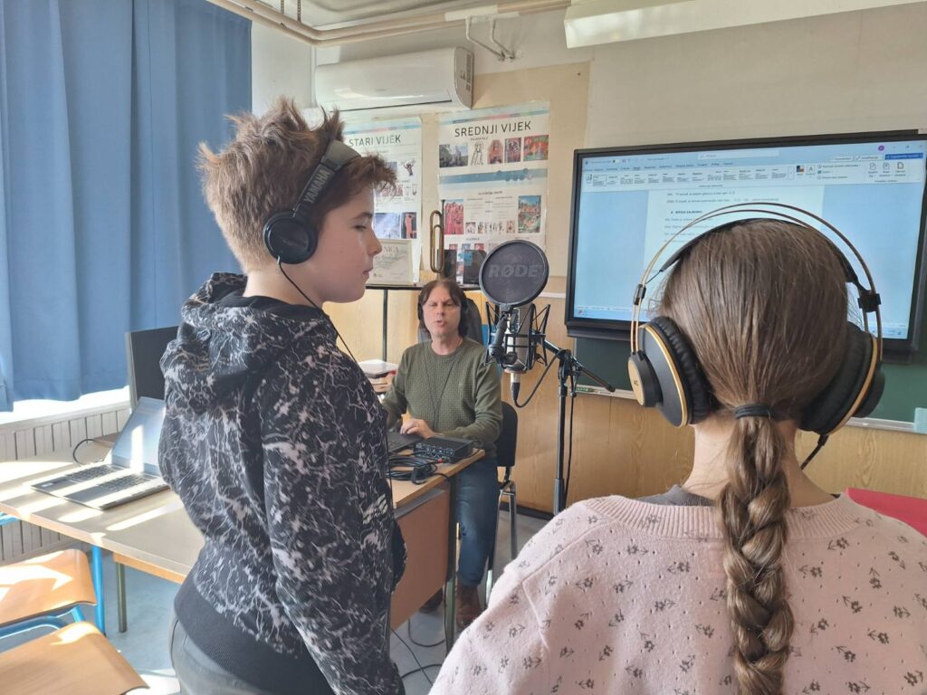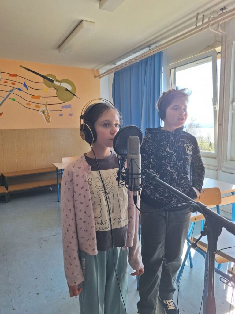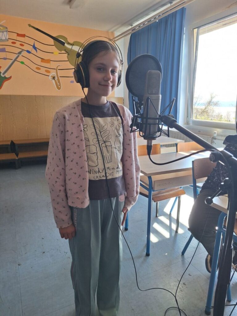 U utorak, 17. ožujka, u našoj je školi vladala posebna, gotovo studijska atmosfera. Učenici Iskra Medić i Noa Kolundžić snimali su svoju pjesmu „Rock potresujka“ u pravom malom glazbenom studiju koji je za tu prigodu dopremljen u našu školu. Za realizaciju snimanja, kao i za oblikovanje aranžmana, zaslužan je Aleksandar Valenčić, koji je pomogao da naša ideja dobije konačni glazbeni oblik. Ova vesela dječja pjesma nastajala je tijekom proteklih tjedana u okviru stvaralačke radionice, pod mentorstvom učiteljica Marine Frlan Jugo i Anite Stupac Butorac.