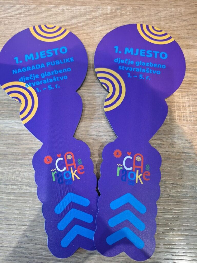 ČAraoke – Dječji festival čakavske pjesme održane su po treći put. U utorak, 21. travnja, između dvadesetak izvođača s područja cijele naše županije, nastupili su i predstavnici naše škole. U Centru Gervais u Opatiji tražilo se mjesto više. jem su naši učenici Iskra Medić i Noa Kolundžić ostvarili zapažen i iznimno uspješan nastup. Predstavili su se pjesmom Rock potresujka koju su napisali i skladali uz pomoć svojih učiteljica Marine Frlan – Jugo i Anite Stupac Butorac, dok je aranžman pjesme izradio Aleksandar Valenčić, kojem upućujemo duboku zahvalnost na uloženom trudu i doprinosu.