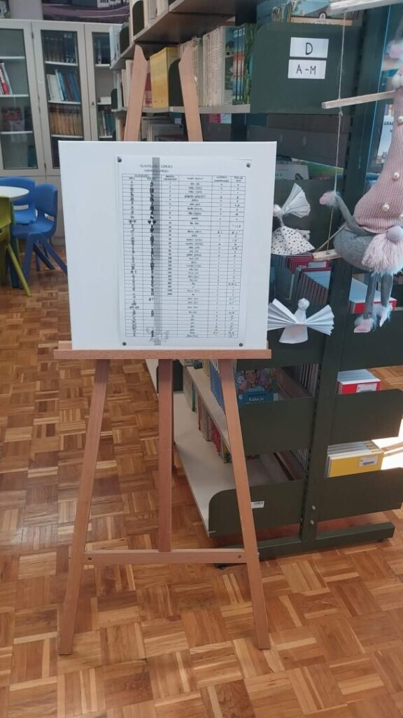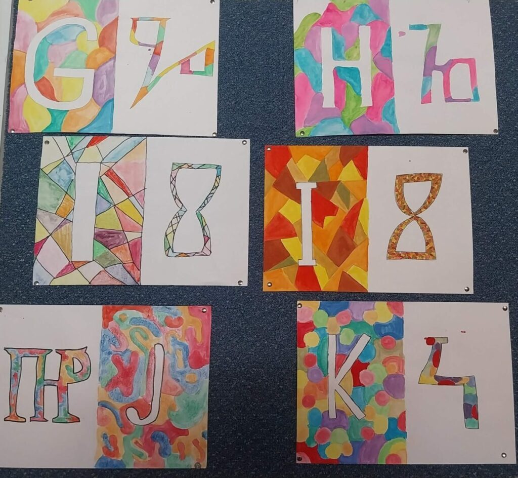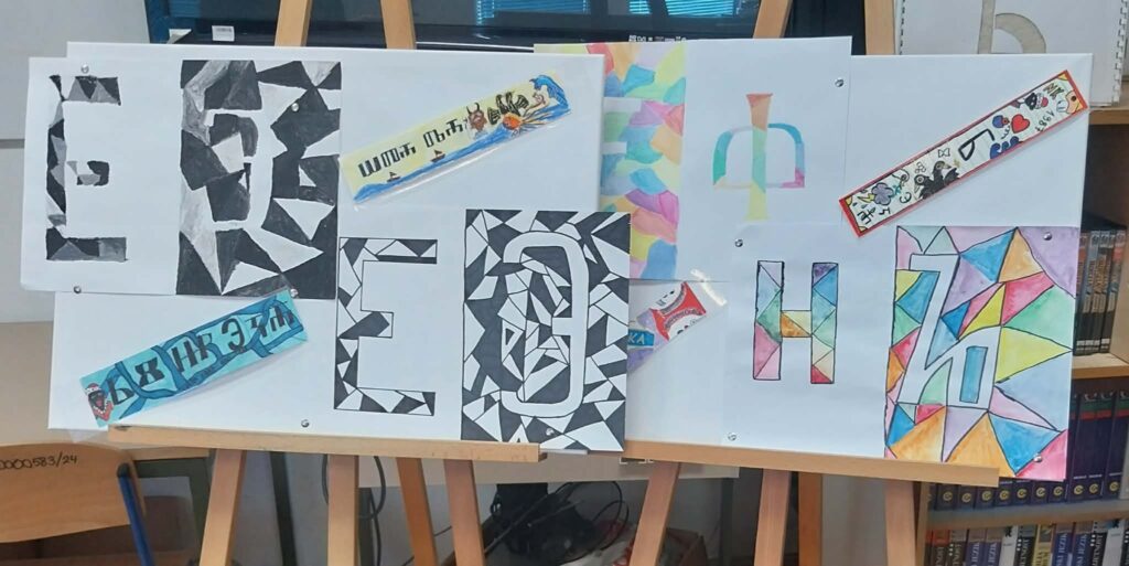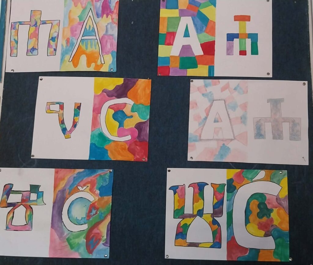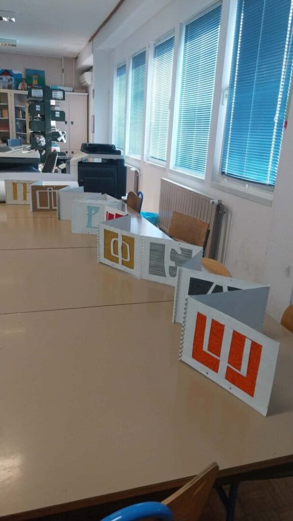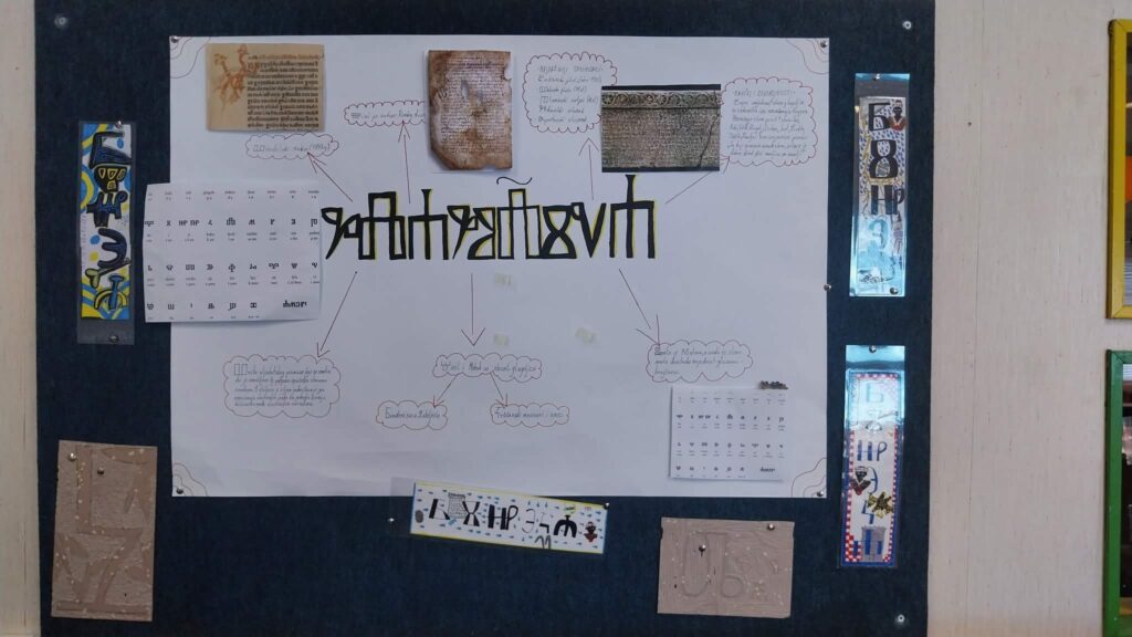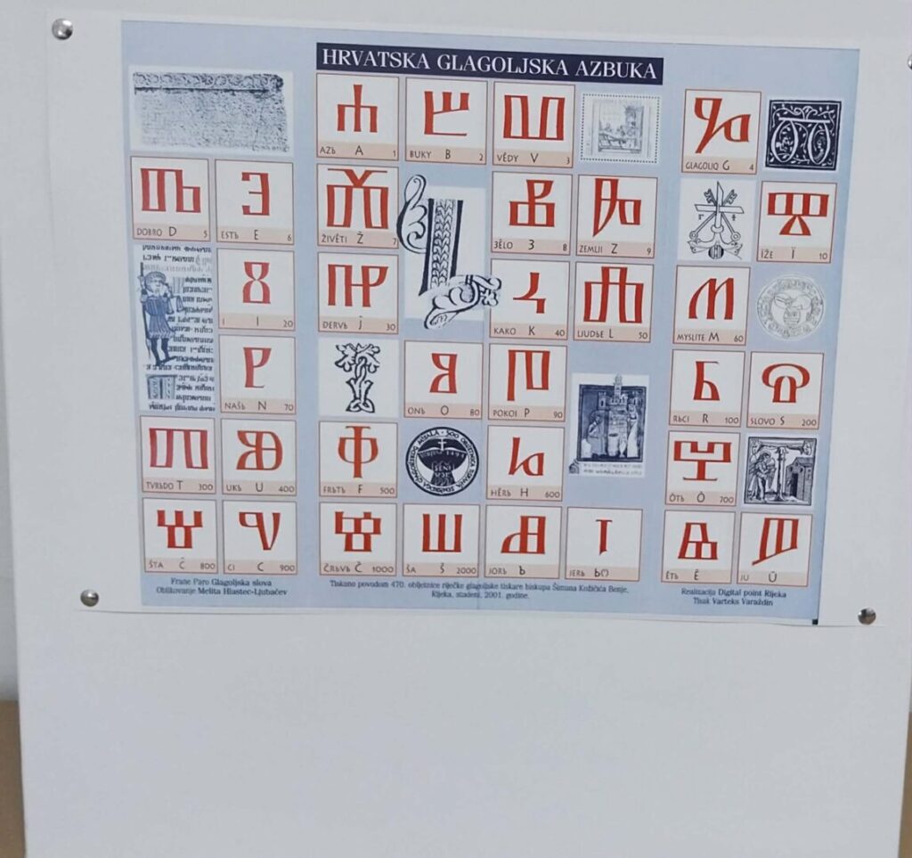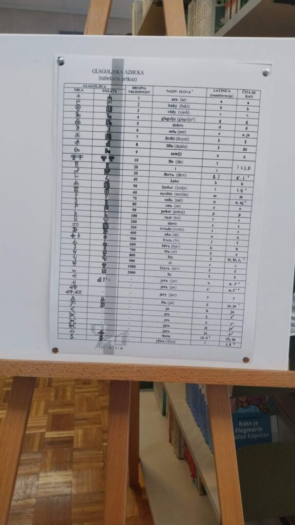 Učenici petih razreda slikali su glagoljska slova u paru s latiničnima, po principu pozitiva i negativa. Izložba najuspješnijih radova postavljena je školskoj knjižnici, ali i na panoima u ostalim školskim prostorima. Povijest glagoljice predstavljena je plakatom koji su izradili učenici šestih razreda, a izložba je upotpunjena i taktilnom slovaricom, nastalom pred nekoliko godina, tijekom školskog projekta posvećenog upravo glagoljici.