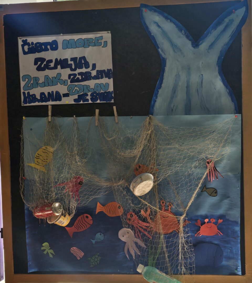Učenici trećih razreda postavili su izložbu radova koji su nastali kao rezultat školskog projekta „Čisto more, zemlja, zrak, zdrava hrana – zdrav je svak“. Marljivo su učili o važnosti očuvanja voda i našeg planeta Zemlje te različitim aktivnostima razvijali svijest o odgovornom ponašanju prema prirodi i očuvanju okoliša.