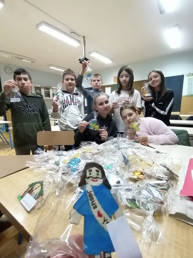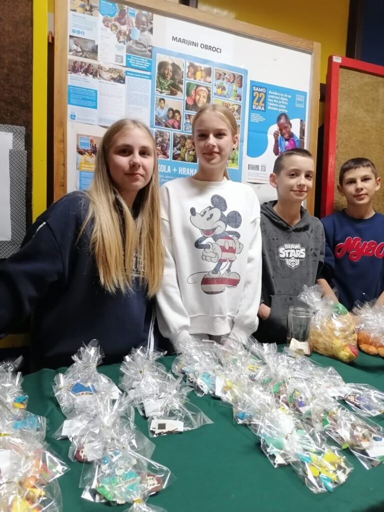 I ove godine naši su učenici nastavili dobrotvorne adventske aktivnosti. Marijini obroci su uz učeničku pomoć priskrbili 624 eura kojim se može nahraniti 28 djece u školskoj godini.