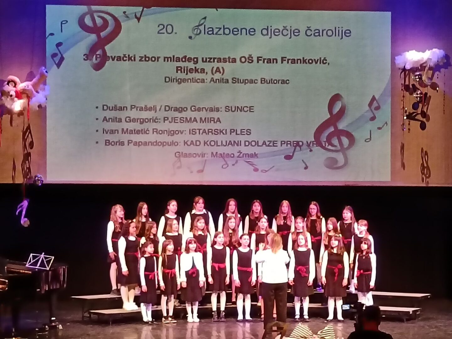 Pjevački zbor i školska klapa naše škole sudjelovali su 24. ožujka na jubilarnoj 20. glazbenoj smotri „Glazbene dječje čarolije“, održanoj u Hrvatskom kulturnom domu.