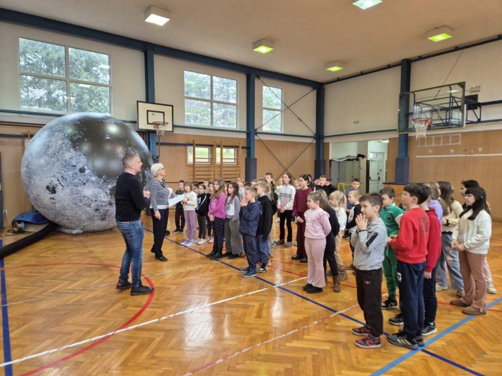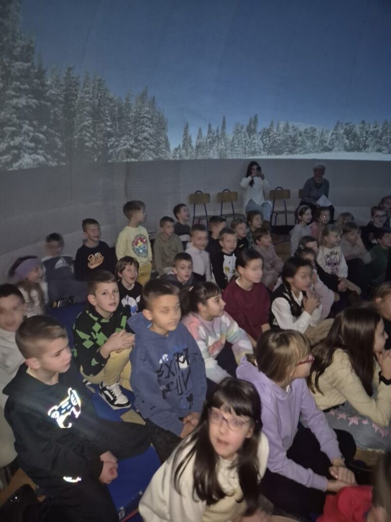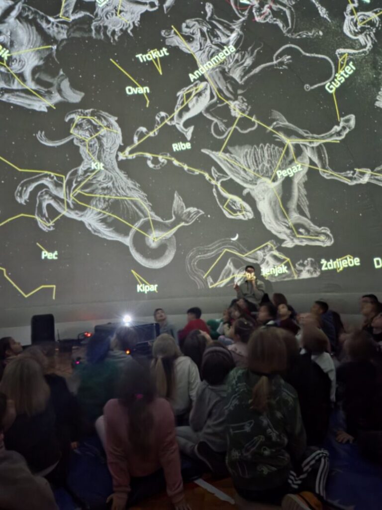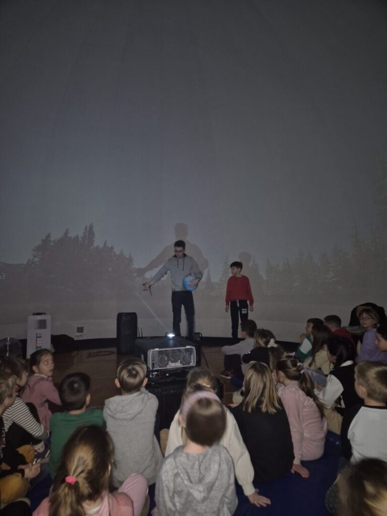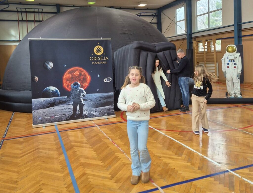 Zahvaljujući gostujućem Planetariju Odiseja, učenici naše škole su u četvrtak, 22. siječnja 2026. imali priliku putovati svemirom. U školskoj dvorani okupilo se dvjestotinjak učenika od 1. do 8. razreda kojima je mobilni Planetarij pružio priliku za upoznavanje zvjezdanog neba iznad nas.