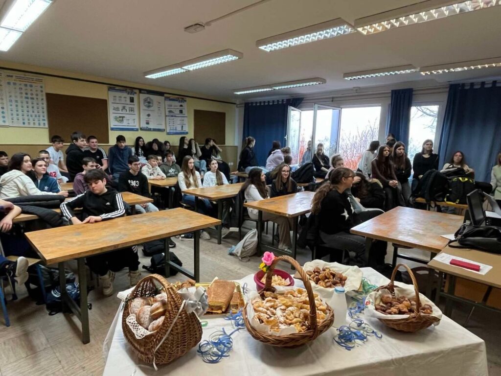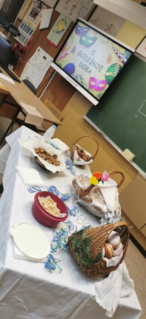 U skladu s temom godišnjeg projekta Tanjur pun tradicije, učiteljice su pripremile i jestiv dio prezentacije: slastice kojima se dočekuju zvončari na njihovom ophodu upisanom na UNESCO-ovu reprezentativnu listu nematerijalne kulturne baštine. Tako su učenici imali priliku kušati domaće fritule, kroštule, presnac i krafne.