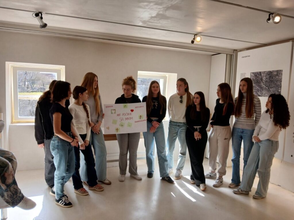 Nakon kratkog odmora za marendu, uputili smo se u Lipu gdje je rad započet obilaskom Memorijalnog centra i šetnjom do Kvartirkine kuće. Nakon razgleda i upoznavanja s najvažnijim činjenicama o zločinu u kojem su stradali gotovo svi stanovnici Lipe, učenici su sudjelovali u radionicama u kojima su iznijeli svoje dojmove i razmišljanja o tome kako je sjećanje na nemile događaje potrebno da bi se gradila kultura mira i tolerancije.